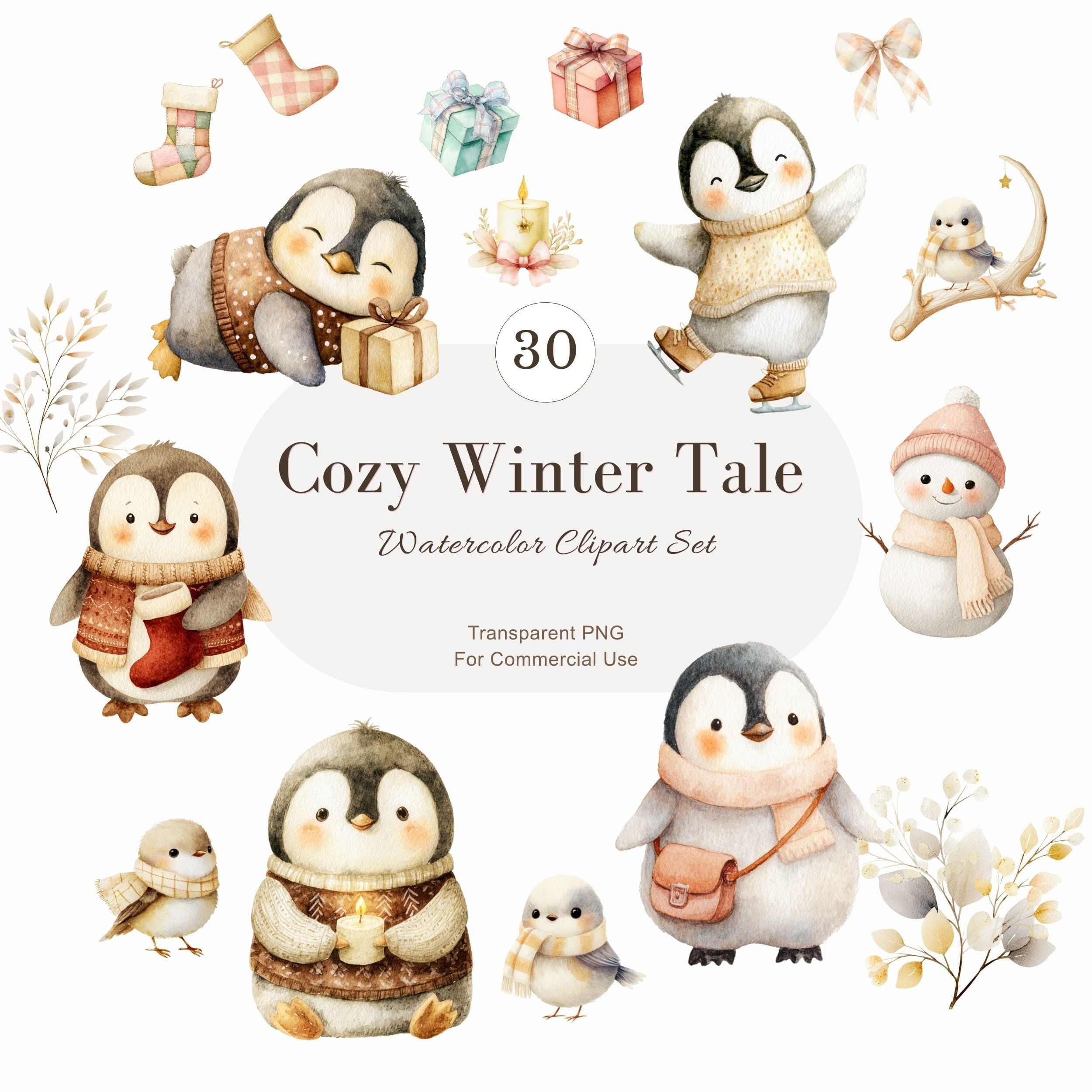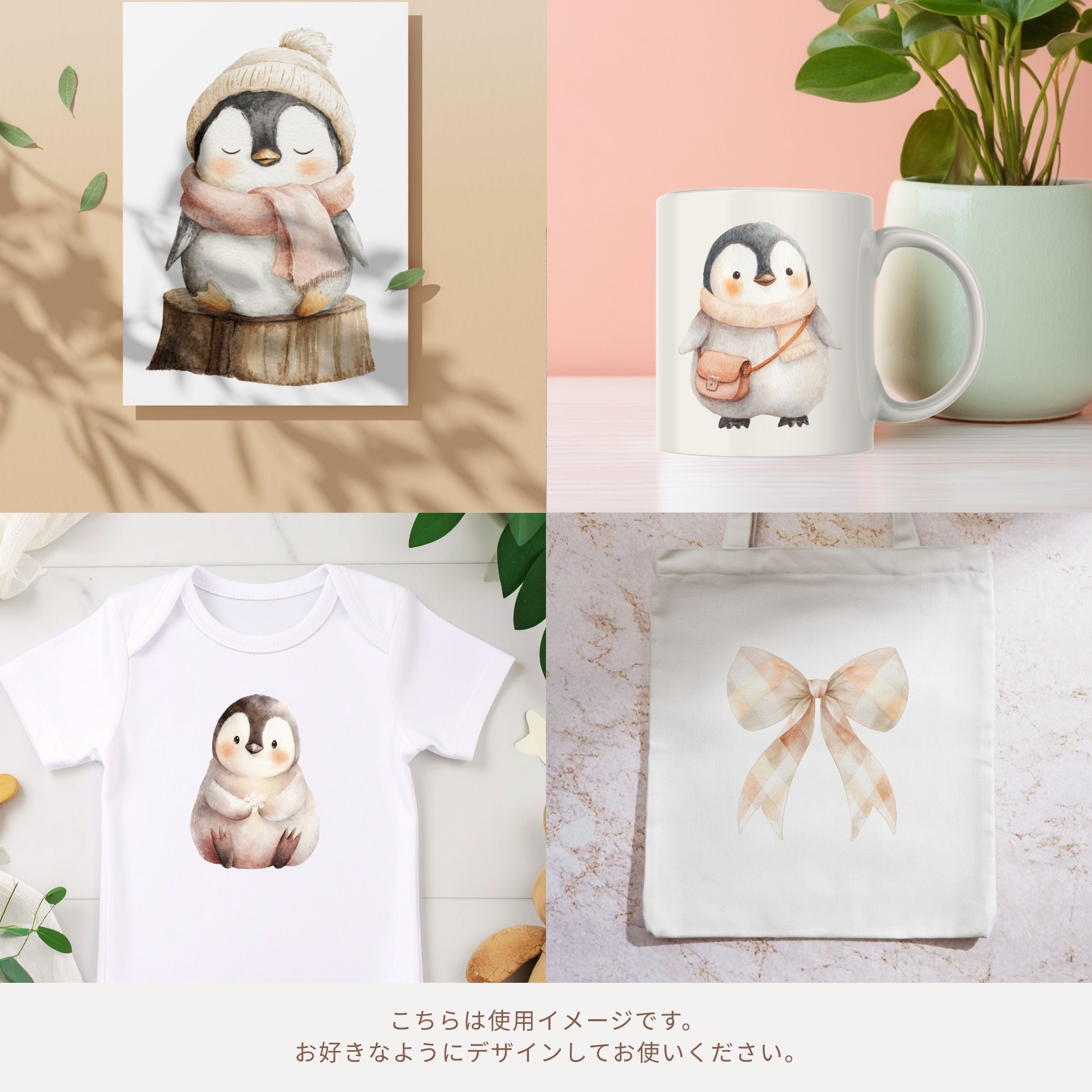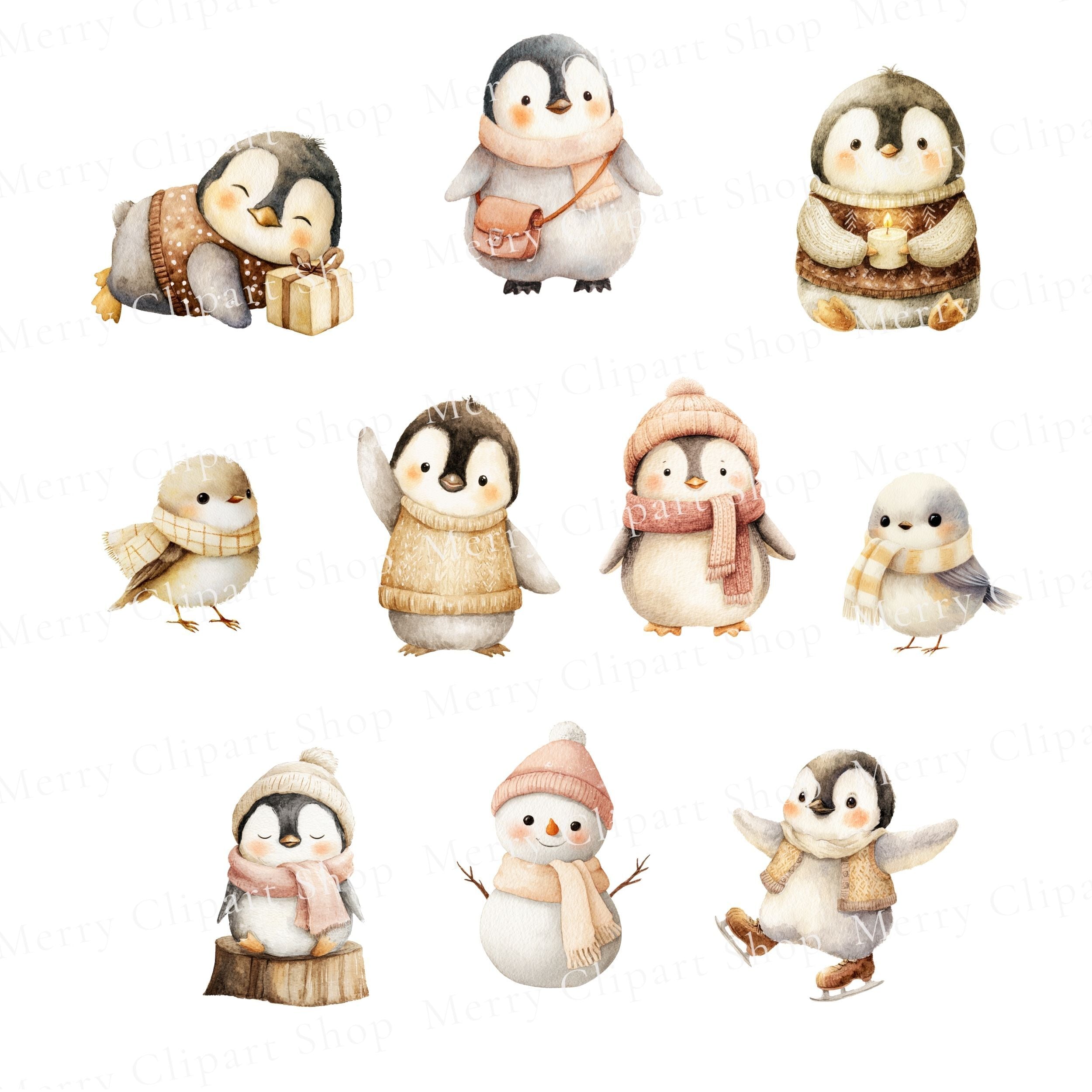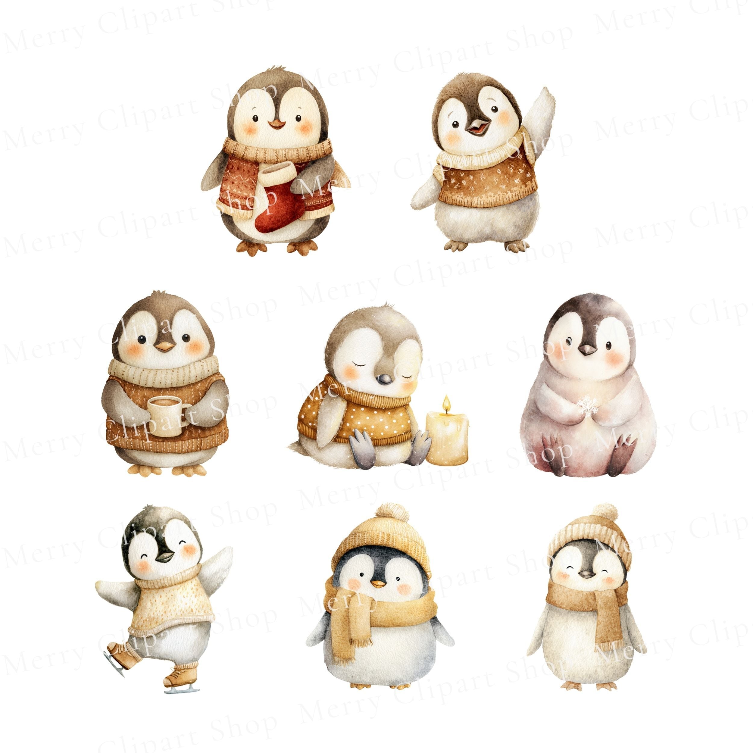 # ペンギンのほっこりクリスマス 水彩イラスト素材セット
