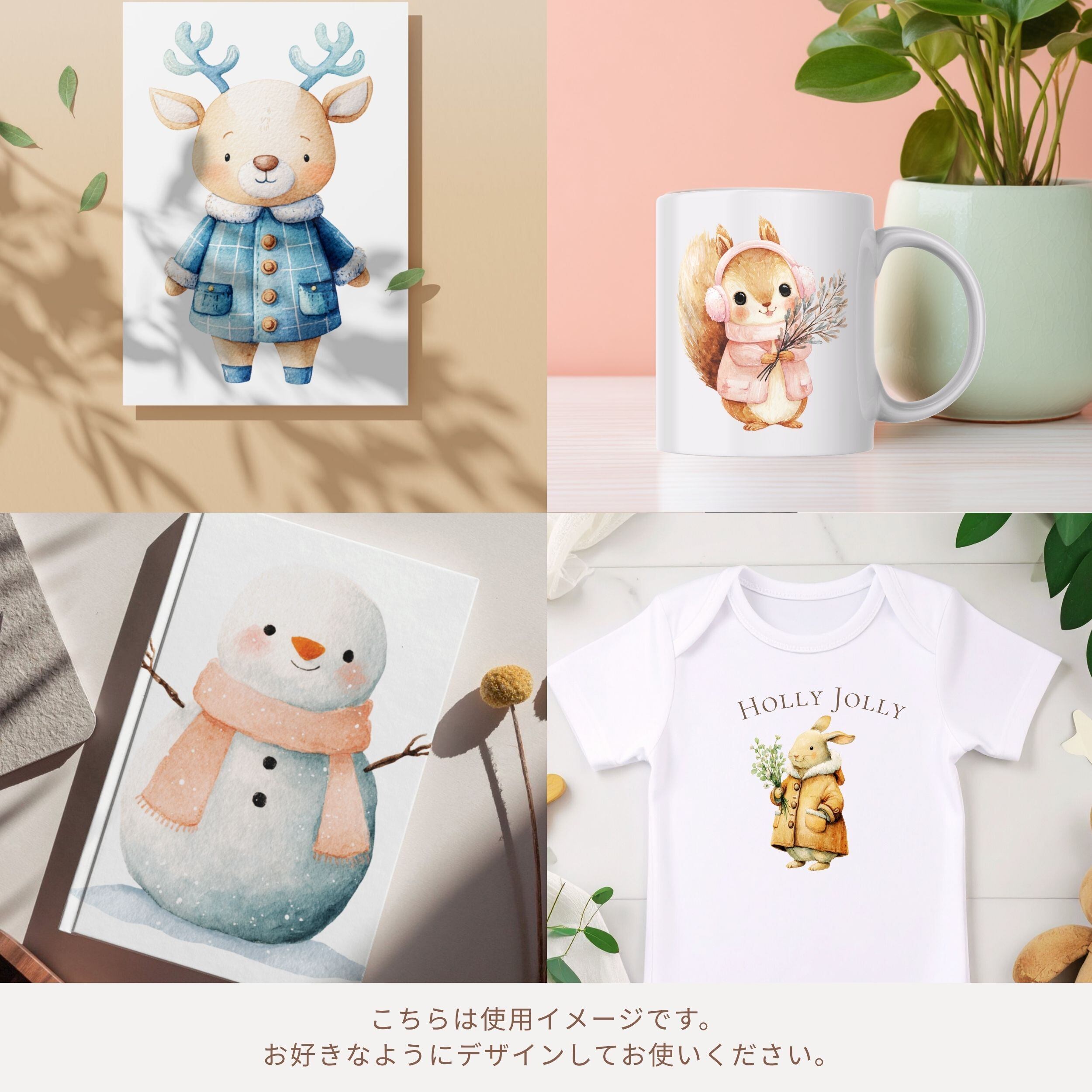 # クリスマスペンギンと冬のどうぶつたち 水彩イラスト素材セット