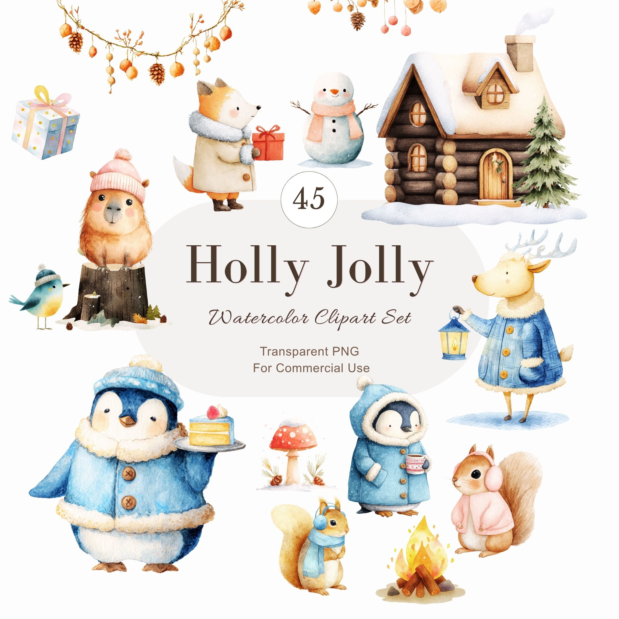 クリスマスにぴったりな可愛らしいペンギンと冬の動物たちを描いた水彩イラストです。愛らしいキャラクターたちが、冬の特別な雰囲気を盛り上げてくれます。デジタル素材として、さまざまなクラフトやデザインにお役立ていただけます✨