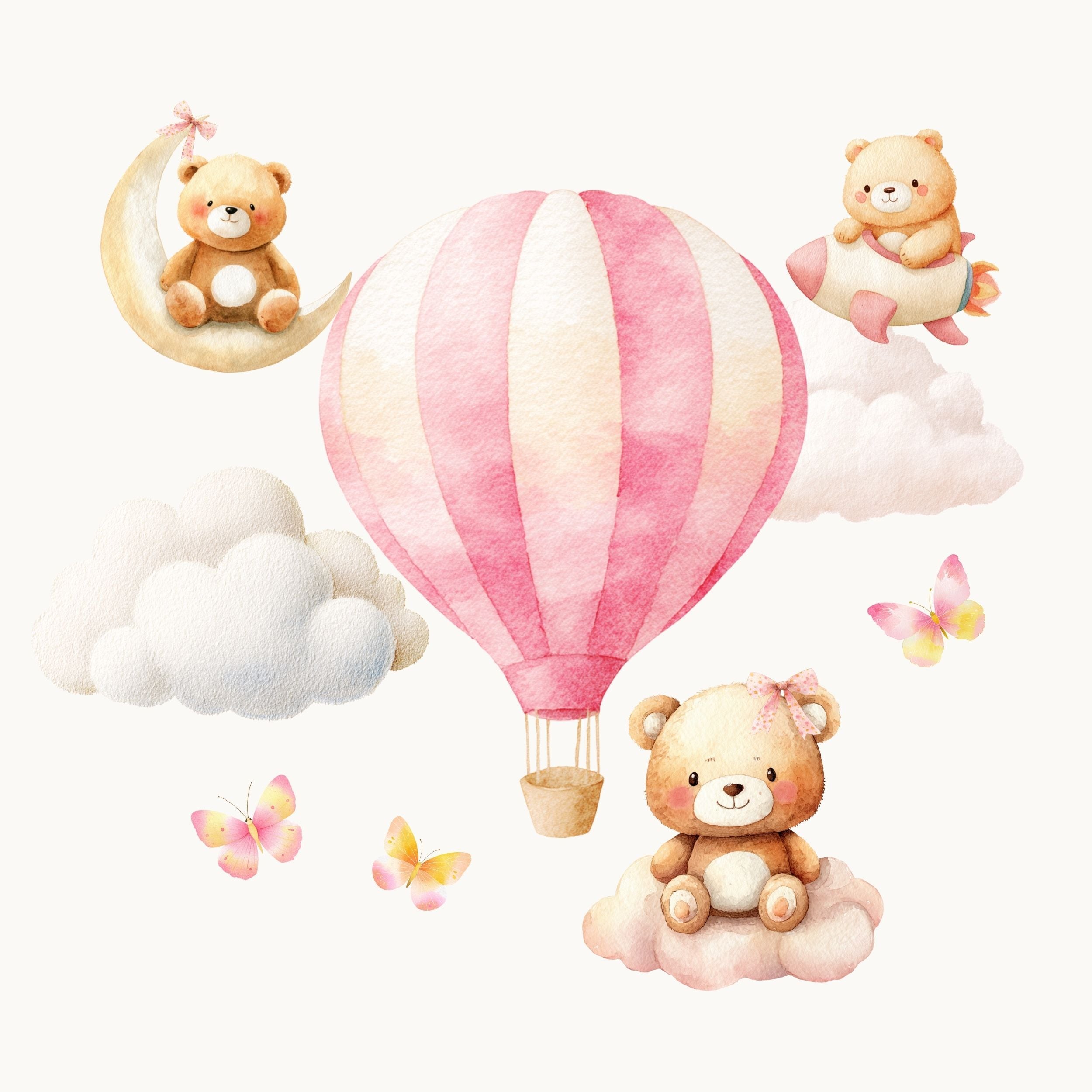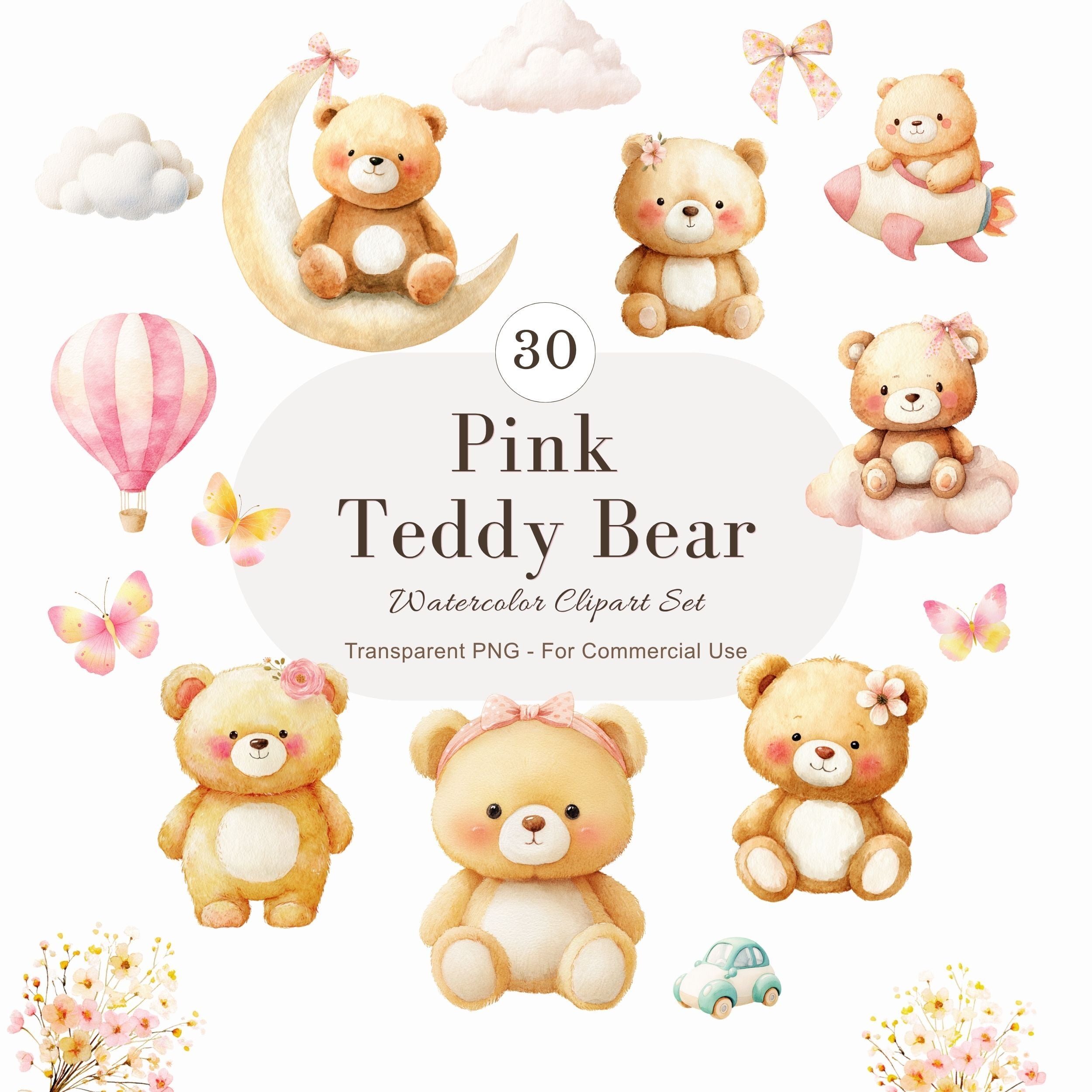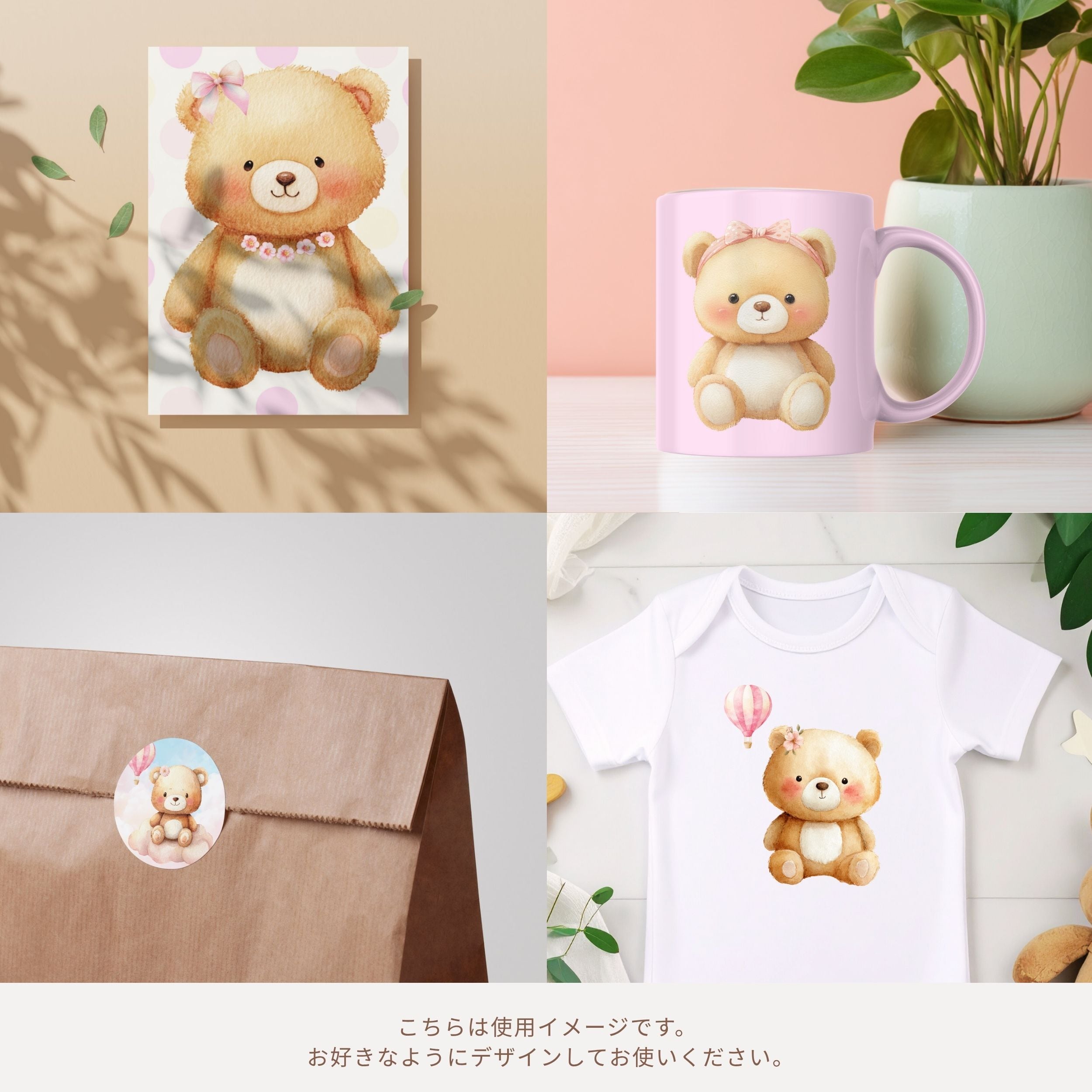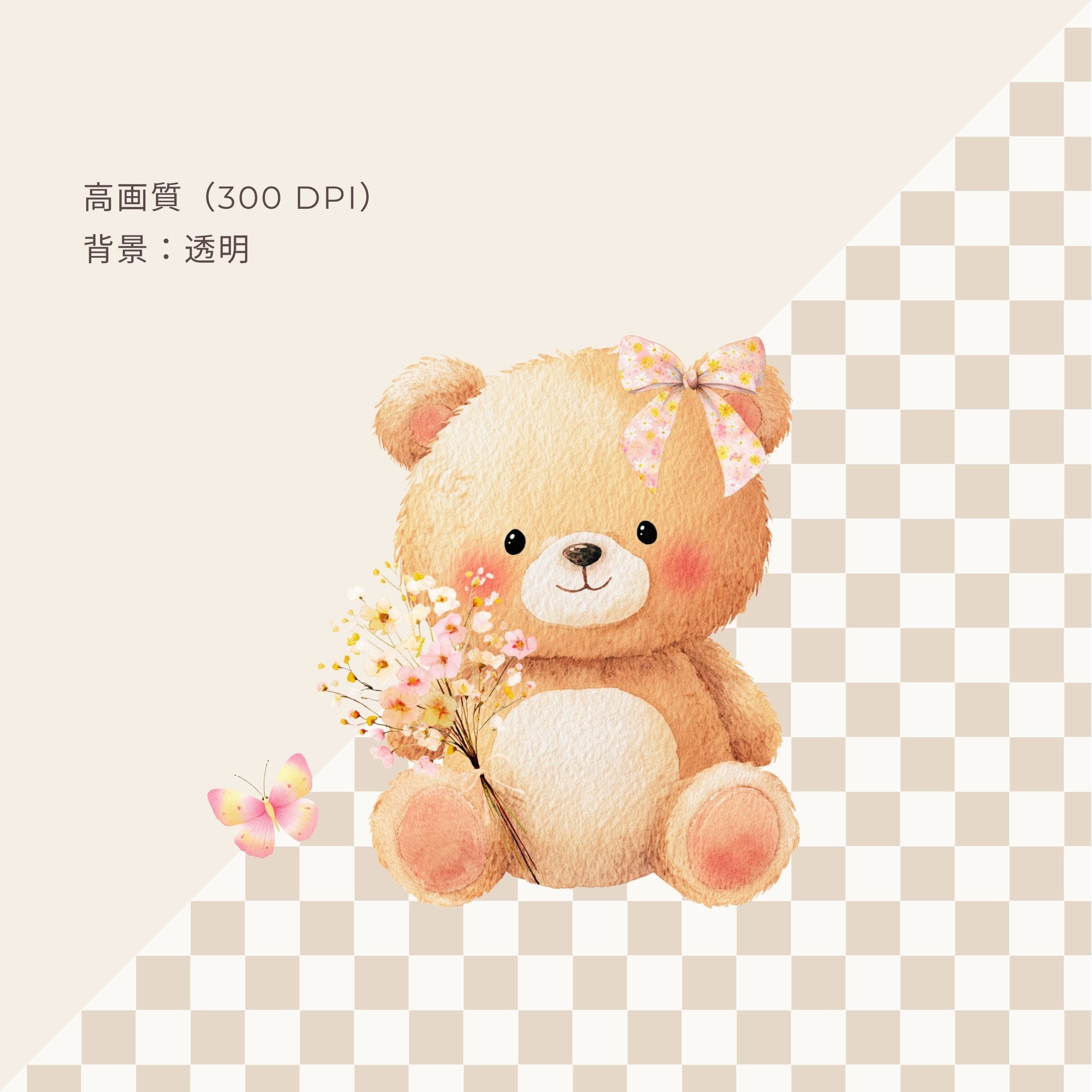 やさしいまなざしのテディベアを描いた水彩イラスト素材セットです。