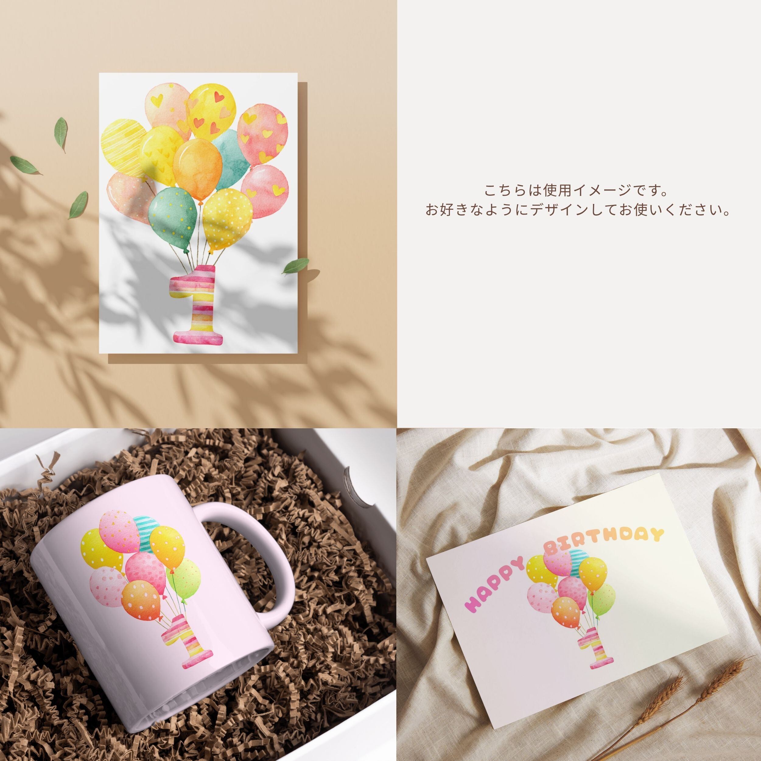 誕生日のお祝いを華やかに彩る、可愛らしいバルーンのイラスト素材セットです。明るくてやさしい色合いが、特別な日の雰囲気を一層引き立ててくれます。デジタル素材として、さまざまなデザインに大活躍すること間違いなし✨