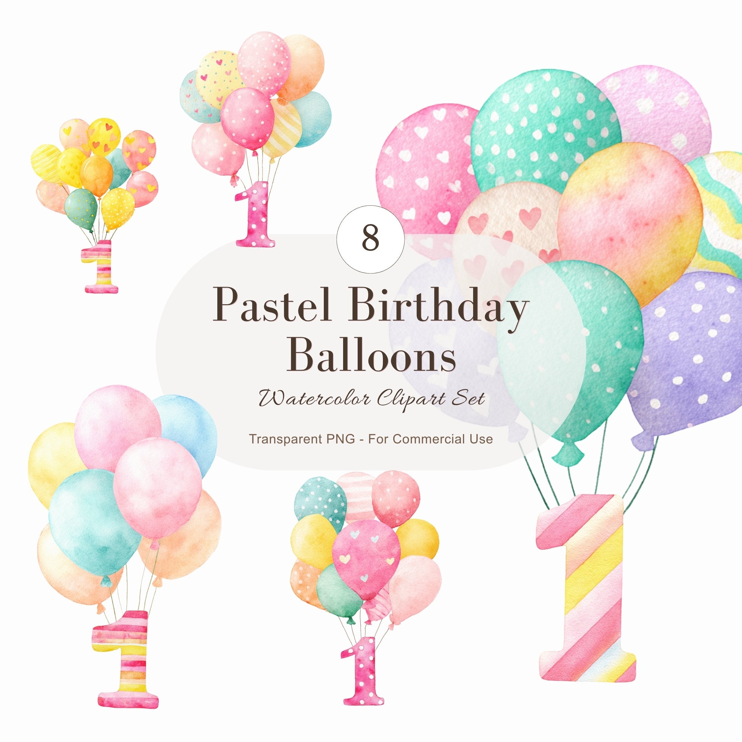# 誕生日バルーンの水彩イラスト素材セット|風船のクリップアート