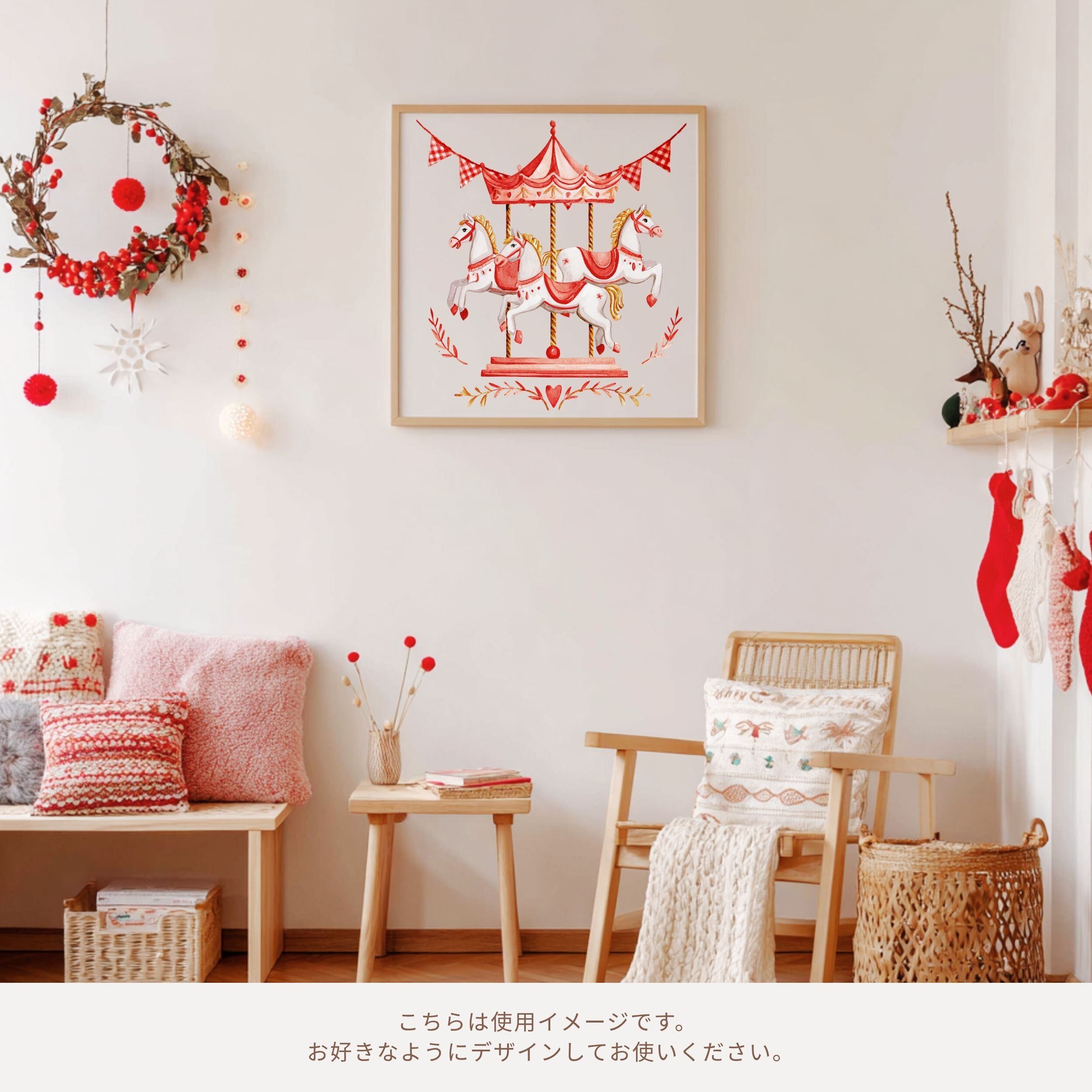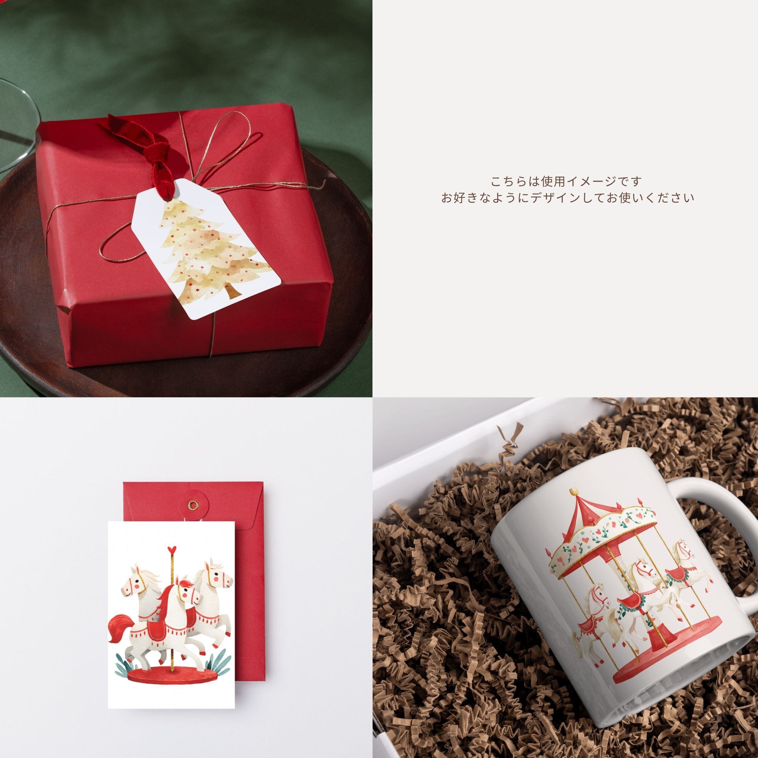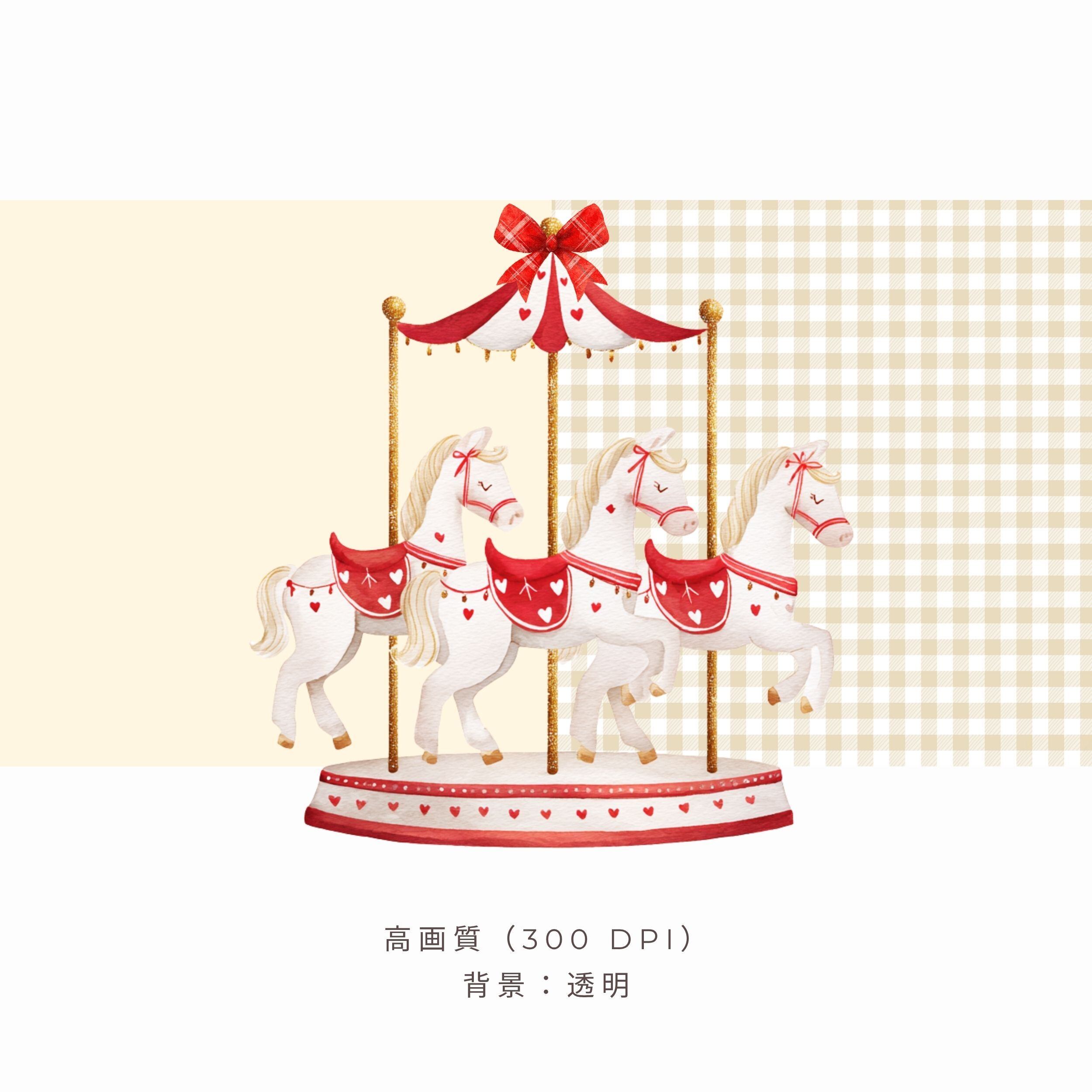 クリスマスを楽しく盛り上げる、メリーゴーランドのイラスト素材です。