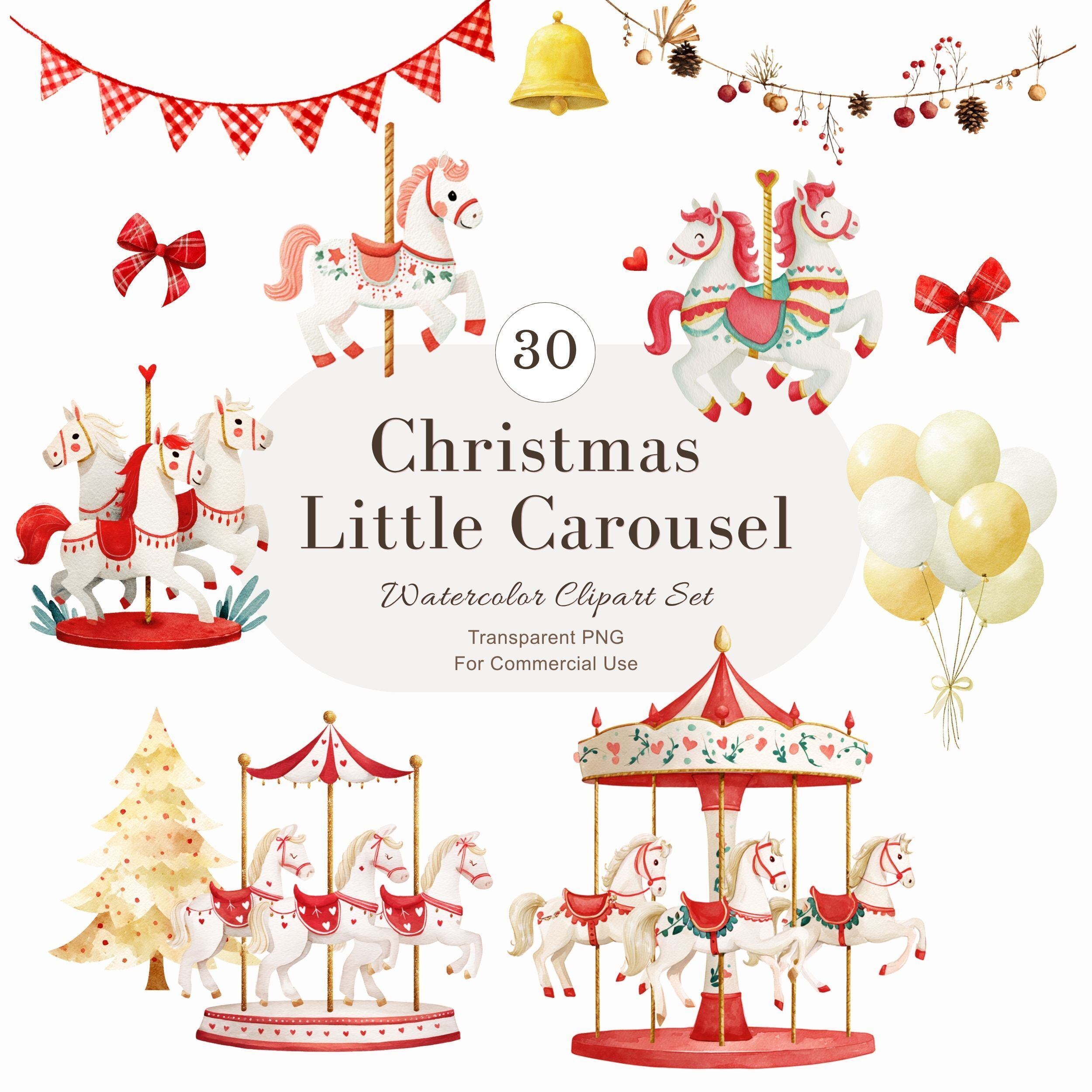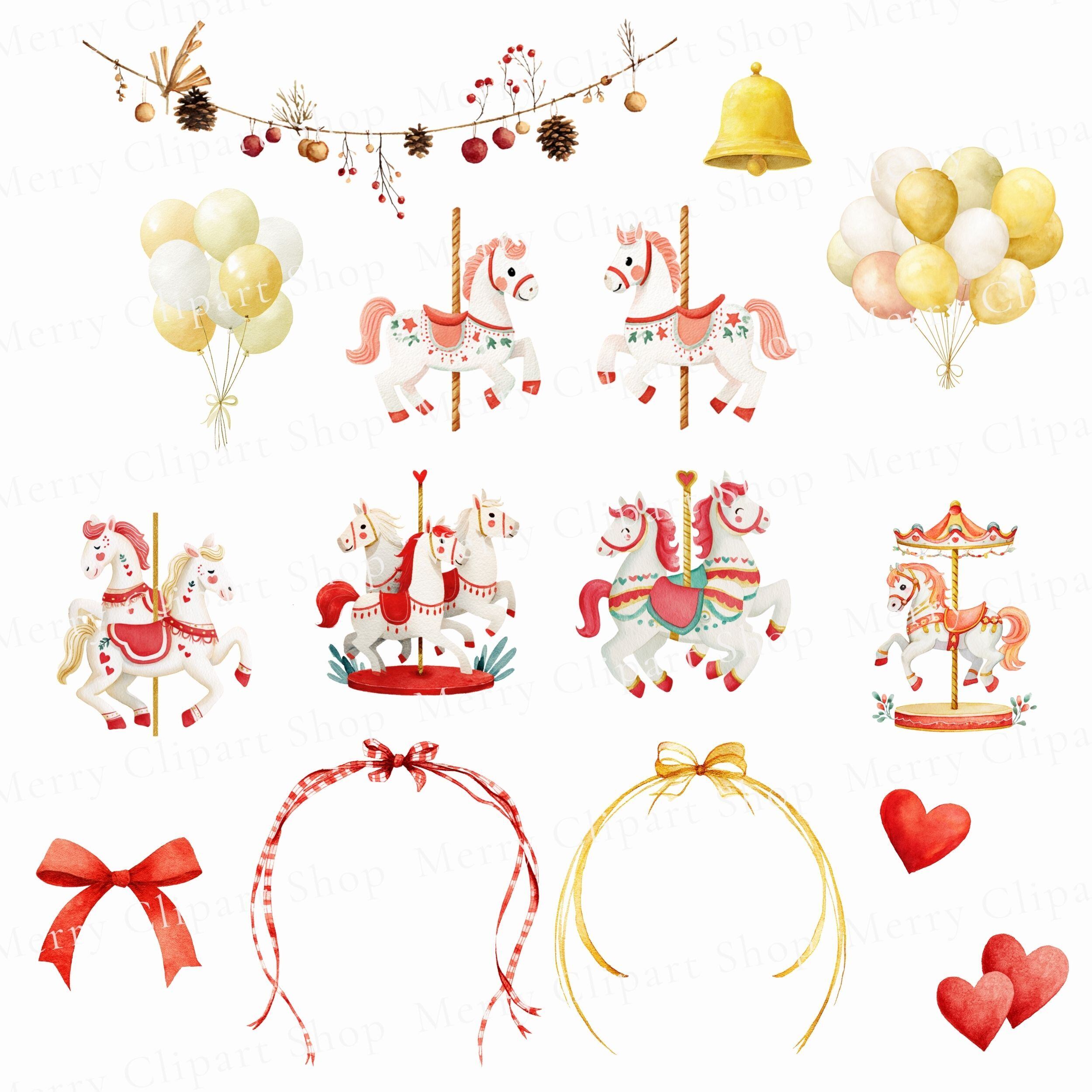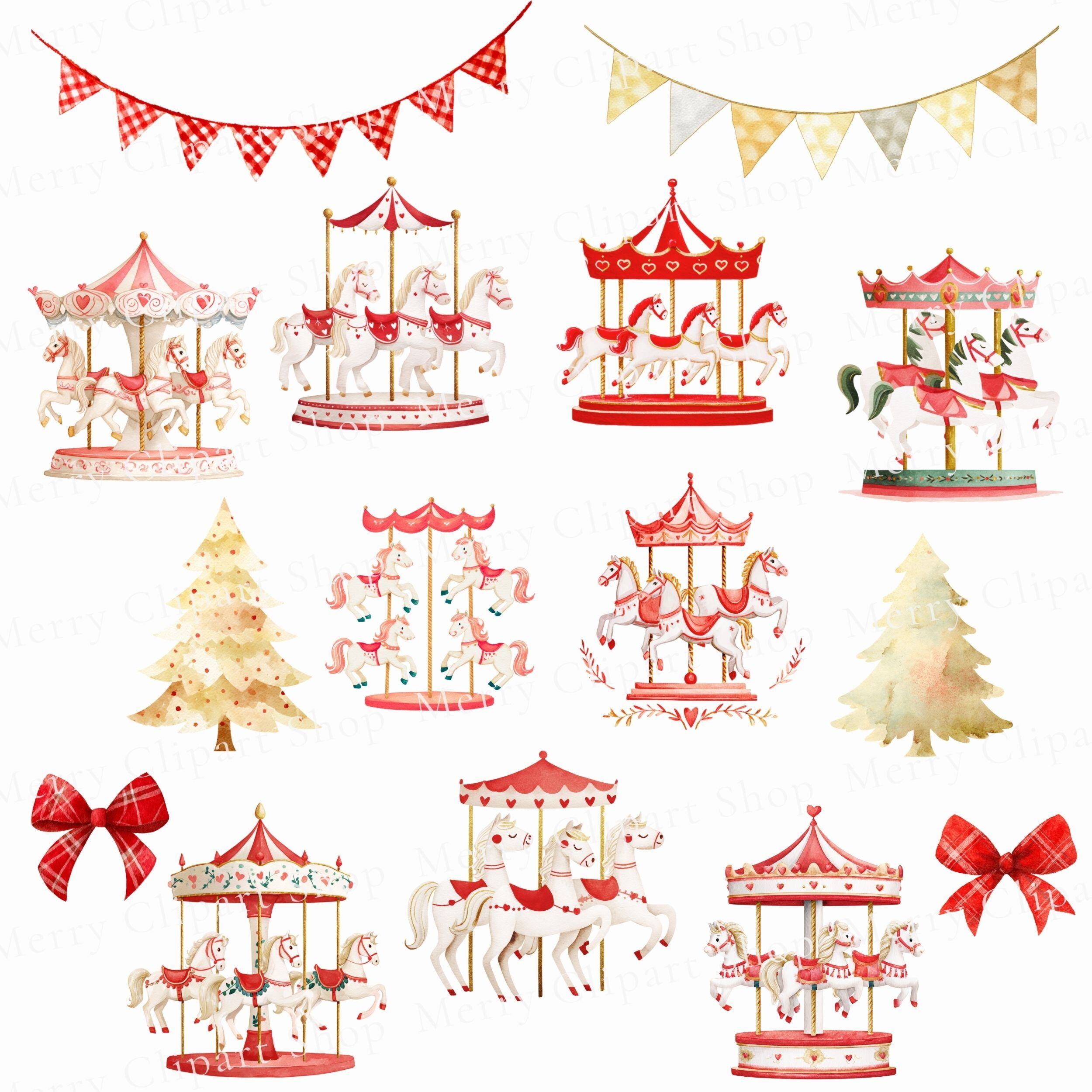 クリスマスを楽しく盛り上げる、メリーゴーランドのイラスト素材です。