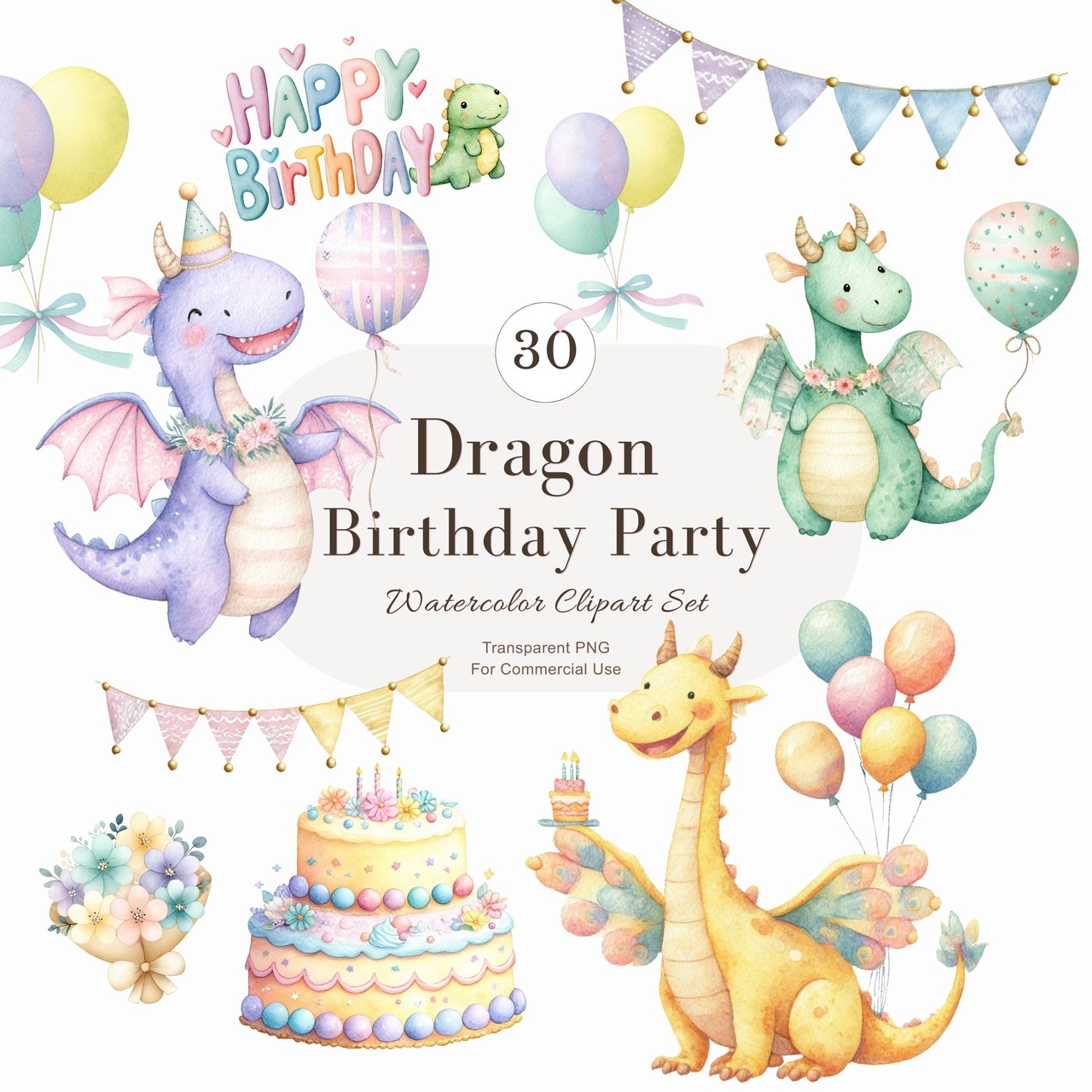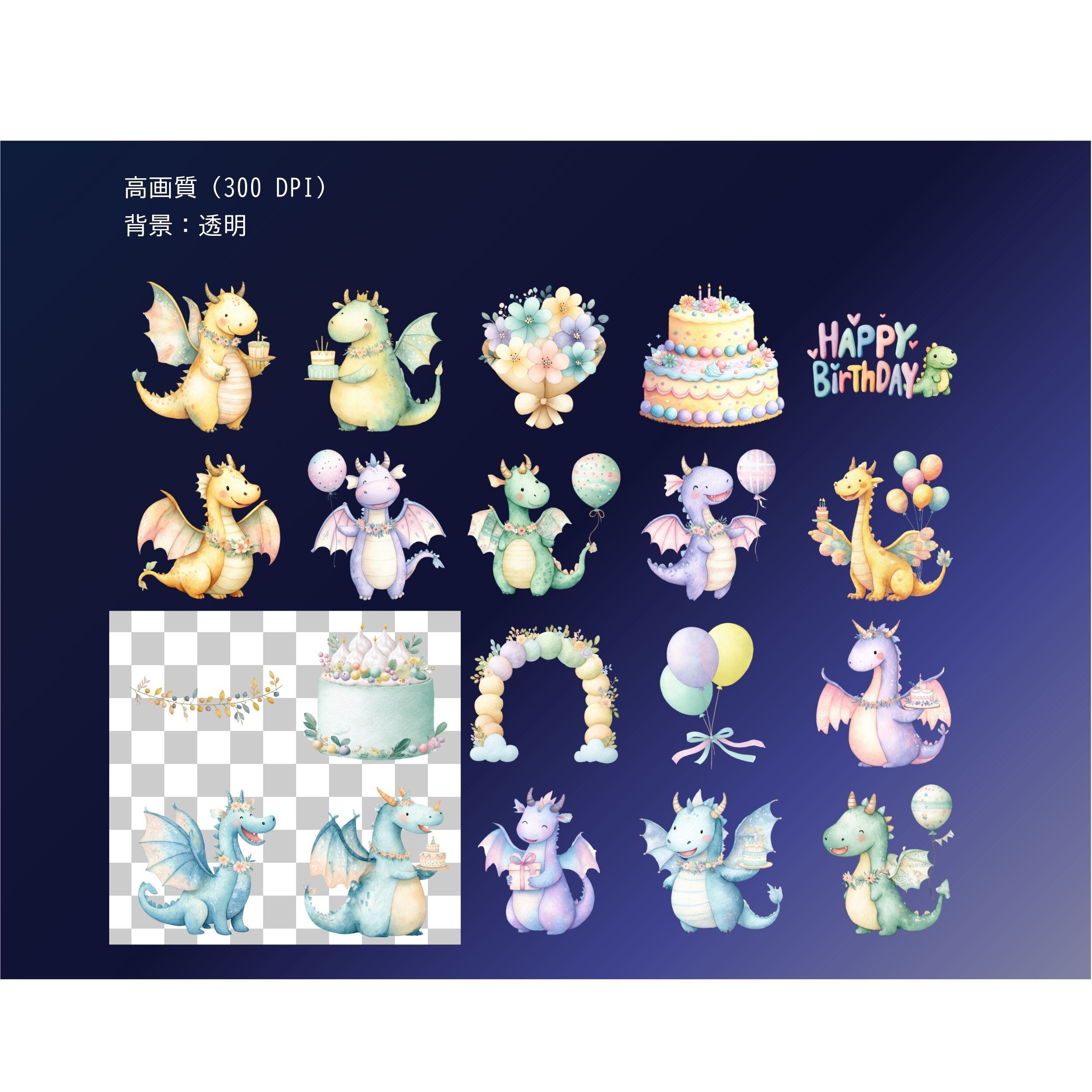 かわいいドラゴンたちが、特別なバースデーパーティーを華やかに演出します。カラフルでファンタジックなデザインは、小さなゲストたちの心を魅了し、楽しい思い出を作るお手伝いをします!